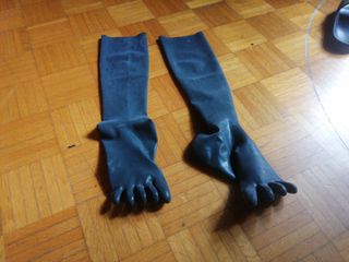 Stivali lunghi in gomma che coprono piede e gamba. - Materiale: gomma. - Design con dita separate per ogni piede.
