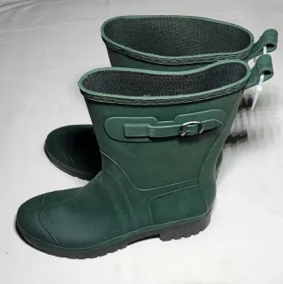Parkside Made in Italy. Stivali in gomma da uomo, L'altezza sopra al polpaccio garantisce una protezione ottimale, mentre la fodera in cotone assicura traspirabilità. La suola è dotata di scolpiture autopulenti e antiscivolo, rendendo questi stivali perfetti anche per chi ha polpacci più robusti. Perfetti per: pioggia neve equitazione caccia e attività all'aperto. Fibbia regolabile lateralmente,N46 ma calzano perfettamente anche 44/45 con soletta interna o calze invernali, facilissimi da mettere e togliere. Nuovi mai usati! - Design classico e funzionale. - Dettaglio con fibbia regolabile. - Suola robusta e antiscivolo.