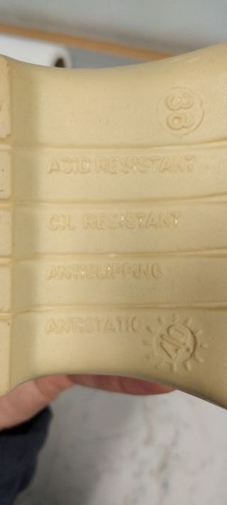 Scarpe antinfortunistiche da lavoro nuove, taglia 38, biache. Punta rinforzata. Antiacido, antiscivolo e restenti agli acidi. Marchiate CE. Disponibile la scatola originale. Ideali per cuochi e infermieri