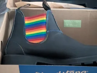 Stivali Blundstone con elastico laterale arcobaleno. Limited edition - Colore nero. - Inserti laterali multicolore a righe arcobaleno. - Cuciture a contrasto.
