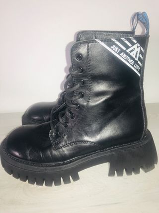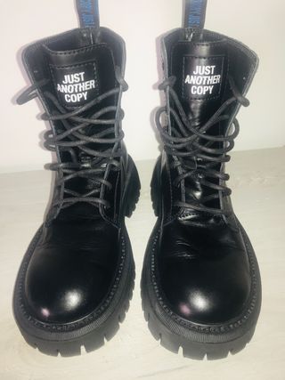 Stivali neri Just Another Copy, taglia 39. Sono in pelle e presentano un design robusto. - Suola spessa - Lacci neri - Altezza anfubio 22cm.