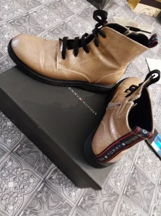 Stivaletti Tommy Hilfiger con una finitura glitter color oro. Perfetti per aggiungere un tocco di brillantezza. - Design con lacci. - Dettaglio logo sulla parte posteriore.
