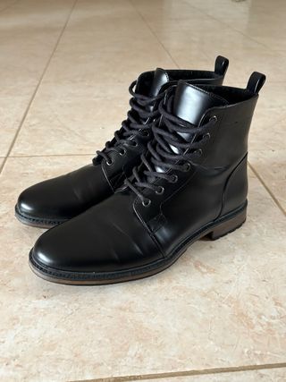 Vendo stivaletti neri con lacci, taglia 44 da uomo, in similpelle, marca Zalando Essentials. Usati solo un paio di volte, in buone condizioni. Presentano alcuni graffi (vedasi foto) sui fianchi di entrambi. Impermeabili, perfetti per le giornate piovose e invernali. Senza la scatola originale. 🚚 Spedizione in 24h