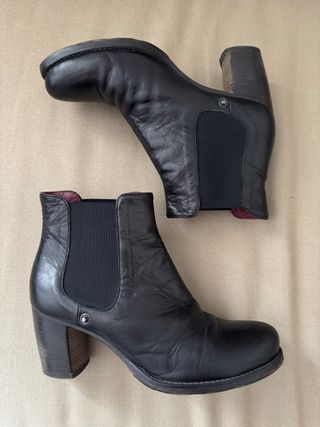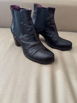 Eleganti stivaletti tronchetti in pelle. - Materiale: vera pelle - Dettagli con elastico laterale - Tacco largo e comodo Presenti segni d’uso Come da fotografie Per qualsiasi informazione non esitare a contattarmi!