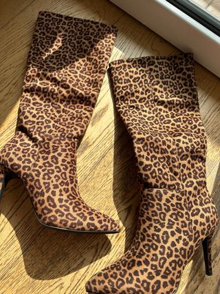 Stivali alti leopardati con tacco