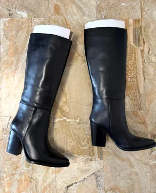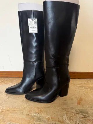 Eleganti stivali alti in pelle ZARA modello Cowboy , perfetti per completare ogni outfit. - Materiale: vera pelle - Colore: nero - Taglia 38 - Nuovi con cartellino pagati 119 euro