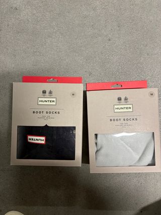 Vendo 2 paia di calze originali Hunter Boot Socks per stivali Hunter Original Tall. • Taglia M (EU 36-38) • Modello con risvolto e logo Hunter • Colori: nero e grigio Condizioni: • Nero: usato una sola volta, pari al nuovo • Grigio: mai usato Perfette da indossare con gli stivali Hunter per tenerli più caldi e comodi. Prezzo trattabile