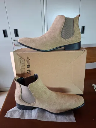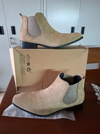 Eleganti stivaletti da uomo in camoscio. Colore beige Numero 43 - Materiale scamosciato. - Design chelsea. - Tacco basso.