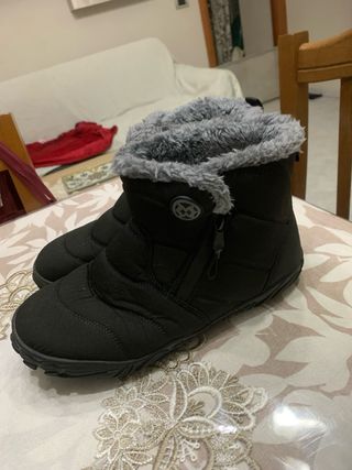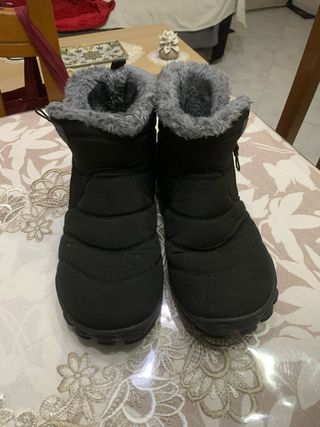 Stivali da neve neri con fodera interna calda e morbida. - Fodera in pelliccia sintetica. - Suola in gomma antiscivolo. - Design comodo e pratico.