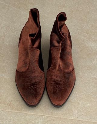 Eleganti stivaletti texani in velluto marrone. - Materiale in velluto. - Design texano. - Punta affusolata.