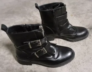 Stivaletti alla moda con dettagli in fibbia. - Materiale: ecopelle. - Chiusura con zip laterale. - Dettagli con fibbie metalliche.