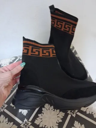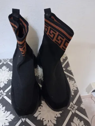 Stivaletti alla caviglia con un design moderno e accattivante. - Tomaia in tessuto elasticizzato nero. - Dettagli a contrasto color marrone. - Suola robusta.
