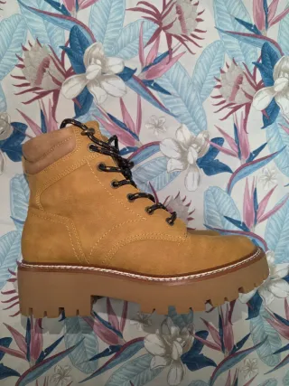 Vendo bellissimi stivaletti anfibi firmati Stradivarius, taglia 38. Colore cammello/senape classico, stile scarponcino con comoda suola spessa a carrarmato (chunky) e lacci trekking. Le scarpe sono PARI AL NUOVO: come si vede bene dalle foto delle suole, non sono mai state usate in strada. Perfette per l'inverno o le mezze stagioni. Vendo complete della loro scatola. Comodissime e versatili per ogni outfit! #stradivarius #anfibi #scarponcini #stivaletti #tg38