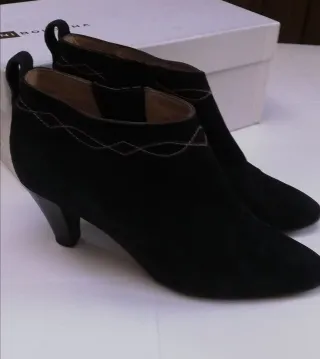 Eleganti stivaletti da donna. - Materiale scamosciato. - Dettaglio con zip laterale. - Tacco comodo. Difetto sul tacco ma nulla di che