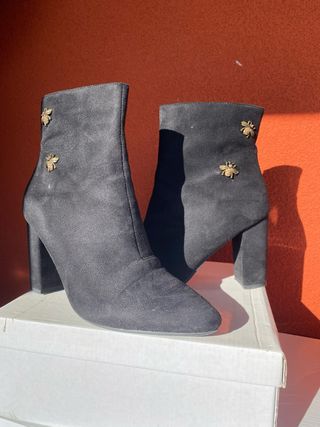 Eleganti stivaletti neri con tacco, perfetti per completare ogni outfit. - Dettaglio ape dorata applicata. - Tacco robusto e comodo.