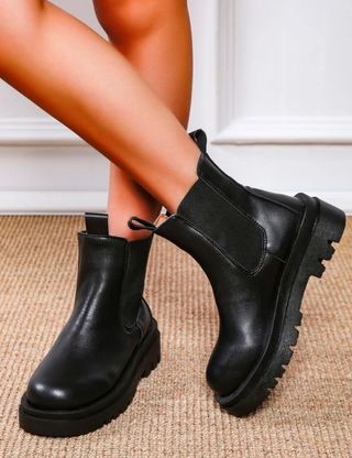 Scarpe senza lacci ,stivali chelsea , di colore nero e unico ,il tacco medio ( 5cm/ 2 inch ) con la punta rotonda.