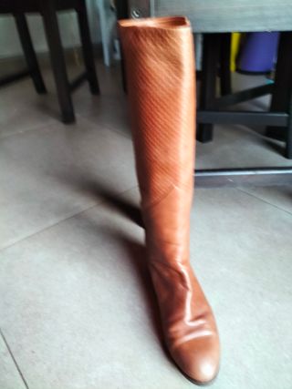 Stivale in pelle color cammello, usato poco, morbidissimo, n.37, tacco basso. Suole nuove.