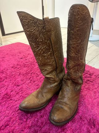 Stivali texani in pelle con un bellissimo motivo floreale inciso. - Design country chic. - Dettagli lavorati. - Zip laterale per una facile calzata. prezzo trattabile !!!scrivetemi !!!