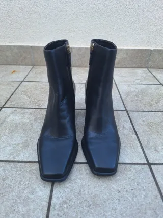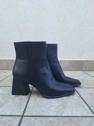 Eleganti stivaletti neri con un design moderno. - Toma a punta. - Dettagli a fasce. - Zip posteriore. presentano a leggera spellatura sul davanti nella fascia più alta ,indossata è impercettibile