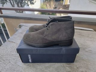 Eleganti stivaletti alla caviglia in morbida pelle scamosciata. - Tacco comodo e stabile. - Dettaglio cinturino con bottone decorativo. Stivali alla caviglia grigi scamosciati, chiusura con zip e stringa con finto bottone. Marca SGN numero 37