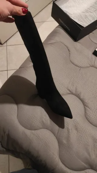 Stivali in pelle scamosciati neri, numero 35, marca Progetto Tacco 7,5 Come nuovi, camoscio leggermente usurato in piccoli punti, ma davvero usura di poco conto. #scarpe #scarpecoltacco #camoscio #camoscionero #stivali #stivalidonna #stivalineri #hirataiscarpe #black #nero
