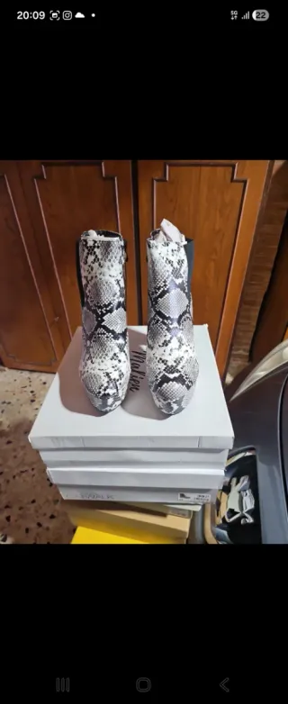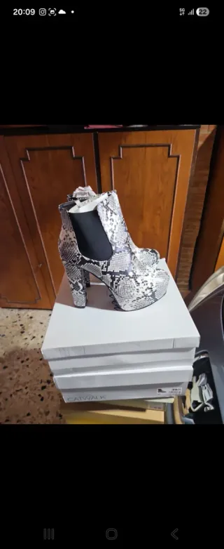 Eleganti stivali con un design audace e un tacco alto che slancia la figura. Perfetti per aggiungere un tocco di stile unico al tuo outfit. - Fantasia effetto pitone. - Tacco largo e plateau. - Elastico laterale per una calzata comoda.