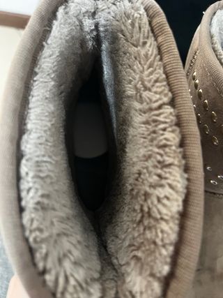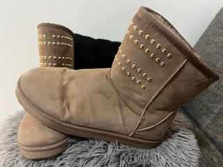Stivali invernali scamosciati in ecopelle, foderati con pelo chiaro, suola in gomma, chiusura ad anello elastico con bottone Usati una/due volte Altezza 20 cm