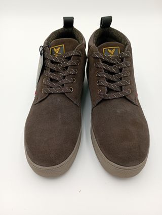 Stivaletti Timberland in camoscio marrone. Modello ATGW R. - Tomaia in camoscio. - Dettagli in pelle. - Fodera interna in tessuto. - Descrizione: Scarpe in pelle scamosciata color marrone con interno imbottito e suola in gomma. Plantare sostituito con Saluber in vera pelle, made in Italy, tacco completamente rifatto - Condizioni: Usato in buone condizioni, lievi segni di utilizzo visibili in foto. Occasione da non perdere!