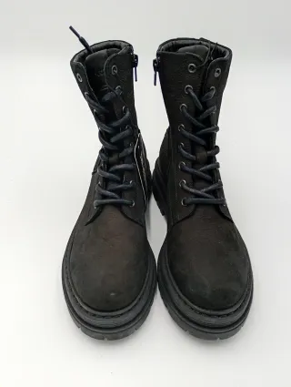 Anfibi Lumberjack in pelle nera. - Chiusura con lacci. - Zip laterale. - Suola in gomma. - Dettagli con cuciture.