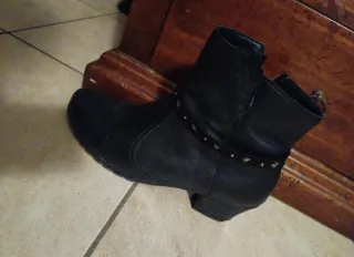 Stivaletti alla caviglia da donna,condizioni discrete ma ancora utilizzabili,vendo così come in foto. - Dettagli con borchie metalliche. - Cinturino con fibbia. - Tomaia in materiale scamosciato.