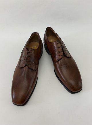 Eleganti scarpe derby da uomo in vera pelle. - Modello stringato. - Dettagli traforati. - Punta squadrata. - # 43 - lunghezza di sottopiede 29,5 cm - vera pelle fuori e dentro - Made in Italy Prezzo retail - €190 Nuove, nella scatola