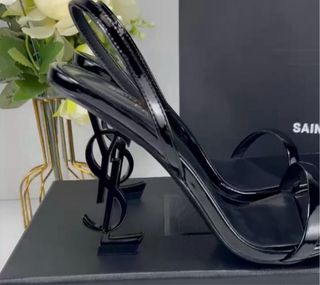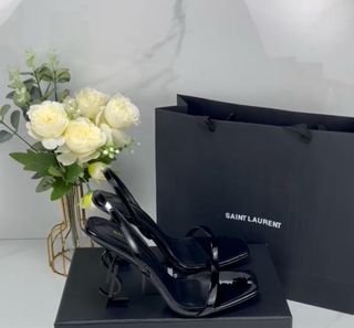 Tacchi in similpelle del marchio Yves Saint Laurent. Design elegante e moderno. Finitura brillante. Cinturino regolabile alla caviglia.