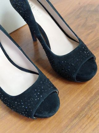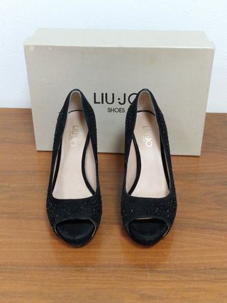 Décolleté Liu Jo in vero camoscio tg 36 ,con plateau e tacco a spillo e suola in vero cuoio - Forniti tacchi e brillantini di riserva inclusi nella scatola e non usati - Misure tacchi in foto. - USATE un paio di volte , come nuove. #KD#