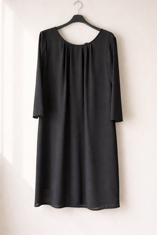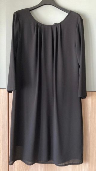 Vendo abito nero a maniche 3/4, linea dritta e stile minimal chic, ideale per ogni occasione: dall’ufficio a un aperitivo serale. 🔹 Brand: Kontatto 🔹 Taglia: M 🔹 Materiale: 100% poliestere (strato esterno), 95% viscosa, 5% elastane 🔹 Colore: Nero 🔹 Dettagli: scollo rotondo, pieghe leggere sul davanti, tessuto fluido con fodera interna. Chiusura posteriore con bottoncino 🔹 Maniche: 3/4 🔹 Condizioni: ottime, indossato un paio di volte ✨ Un classico intramontabile da abbinare con tacchi per un look elegante o con sneakers per uno stile casual e moderno.