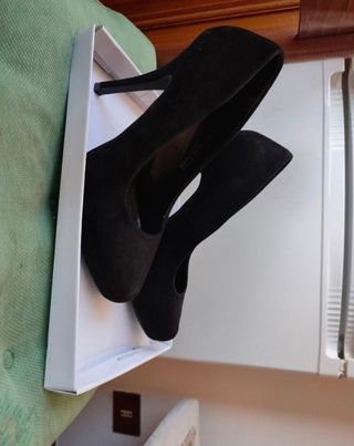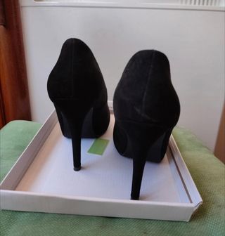 Tacchi Neri scamosciati numero 40 della Pimkie. Usati solo una volta. La destra ha una macchietta bianca dietro che è visibile nell'ultima foto