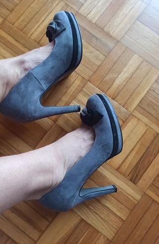 Scarpe in pelle con tacco alto, Made in Italy, usate pochissimo, grigio scamosciato, nr. 37