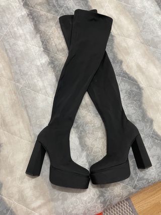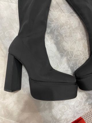 Stivale con cerniera piccola laterale , tacco molto comodo non sembra di star indossando dei tacchi . Altezza tacco 12 cm circa , stivale che aderisce alla gamba come una calza quindi anche per chi ha le cosce un po’ più spesse si adatta Indossato una sola volta