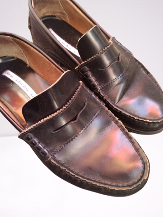 Comodissime, in vera pelle intrecciata e verniciata. In ottimo stato. Fondo in cuoio. Tacchi già sostituiti con nuovi. Usate poco. Scarpe di ottima qualità!