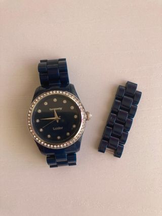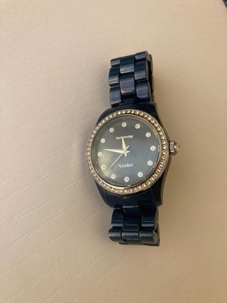Orologio da donna, marca Brosway collezione True Color in policarbonato di colore blu, cassa in acciaio inossidabile, quadrante blu con lancette in PVD rodio, Swarovski attorno al quadrante e al posto dei numeri. Orologio usato molto raramente (1 o 2 volte massimo) e sempre per cerimonie, quindi trattato con la massima cura. L'orologio si presenta come nuovo di fabbrica, con ancora la pellicola protettiva applicata sia sul fronte che sul retro del quadrante, quindi nessun segno di usura. Perfettamente funzionante. Ritiro in zona o spese di spedizione a carico dell'acquirente.