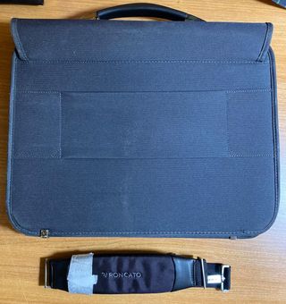 Borsa Roncato colore grigio; da usare come cartella da lavoro, ideale per ufficio. Utilizzo con o senza tracolla. Vano interno con tasca porta tablet / pc. Vano con chiusura a zip con tasche per cellulare, penne, biglietti da visita e altro. La borsa è stata usata molto raramente e sempre per riunioni, quindi trattata con la massima cura. Le uniche imperfezioni sono la clip di chiusura che ha perso la lucentezza e nella maniglia per portarla a mano si è consumata parte della plastica laterale (come visibile in foto), per il resto sia gli interni che l'esterno sono in ottimo stato. Ritiro in zona o spedizione a carico dell'acquirente