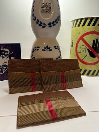Elegante portacarte con il classico motivo a quadri. -6 scompartimenti - Design a quadri iconico. - Dettagli in pelle nera.