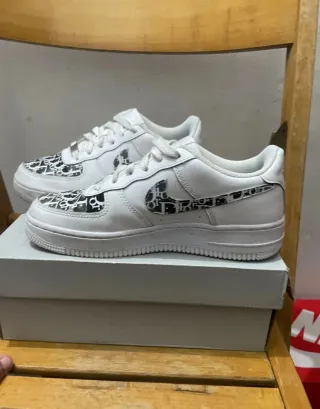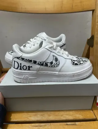 Scarpe Nike Air Force personalizzate Dior. - Design unico. - Logo Dior stampato. - Logo Nike Swoosh.