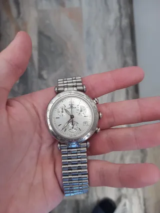 Orologio con movimento eta Valjoux 7750 con cronometro perfettamente funzionante. Il diametro della cassa è circa 38 mm e l'orologio quando passa attraverso la mano ha una circonferenza di circa 17 cm. La lunghezza totale dell'orologio è circa 25 cm