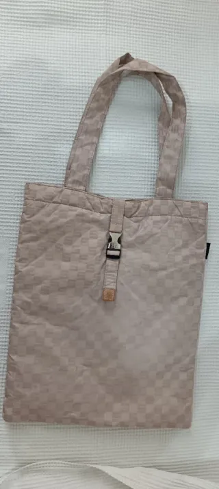 Borsetta a spalla con una trama a scacchiera.Usata ma in buone condizioni. - Chiusura con fibbia metallica. - Manici in tessuto nylon. - Fodera interna visibile.