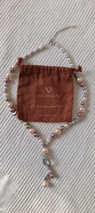 Collana Vestopazzo con perline colorate. Nuova, mai usata. Senza cartellino. - Perline rosa e argento. - Chiusura a moschettone.