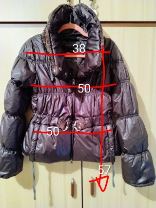 Elegante giubbino composto da un piumino e sopra una giacca. - Il giubbino ha la chiusura frontale con zip. -La giacca ha la chiusura a clip. -Taglia M italiana.