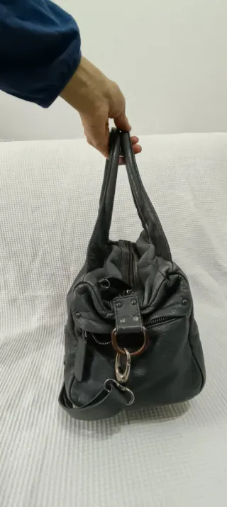 Elegante borsetta a spalla, perfetta per ogni occasione. Realizzata in morbida pelle grigia. Capiente. Effetto pelle vintage caratteristico di suo. - Tracolla regolabile. - Manici superiori. - Dettagli metallici.