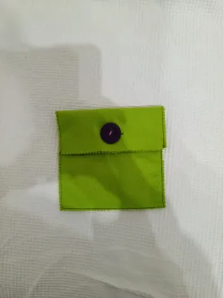 Nécessaire verde con bottone viola
