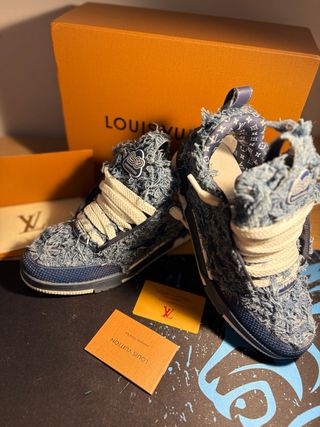 Scarpe Louis Vuitton modello Skate in denim. Uniche e di tendenza. - Design in denim con finiture sfrangiate. - Logo Louis Vuitton visibile.