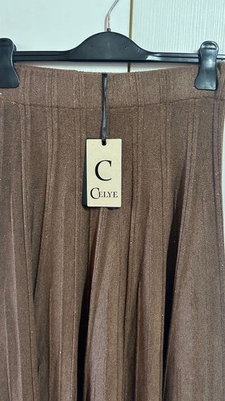 Maglia da donna nuova, con un design a coste e dettagli scintillanti. - Tessuto morbido e confortevole. - Lunghezza midi. - Vita elasticizzata.